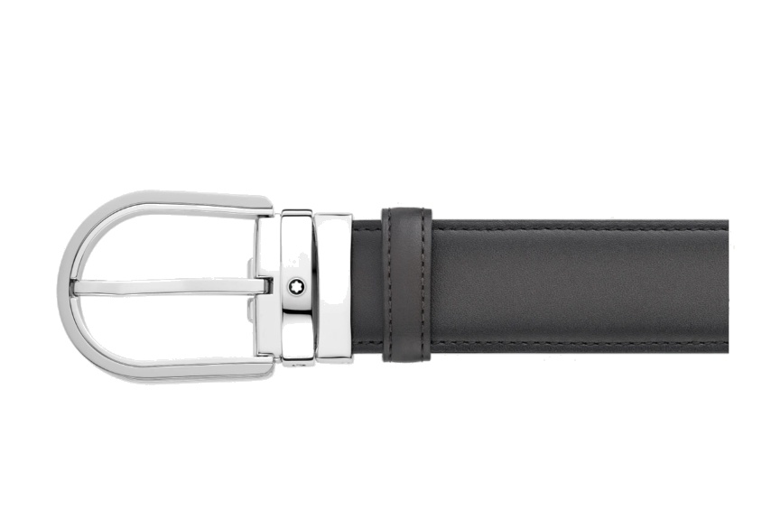 Кожаный ремень с пряжкой в форме подковы серого цвета 35 мм от магазина премиальных ручек Premium Pens в Каменск-Уральске.